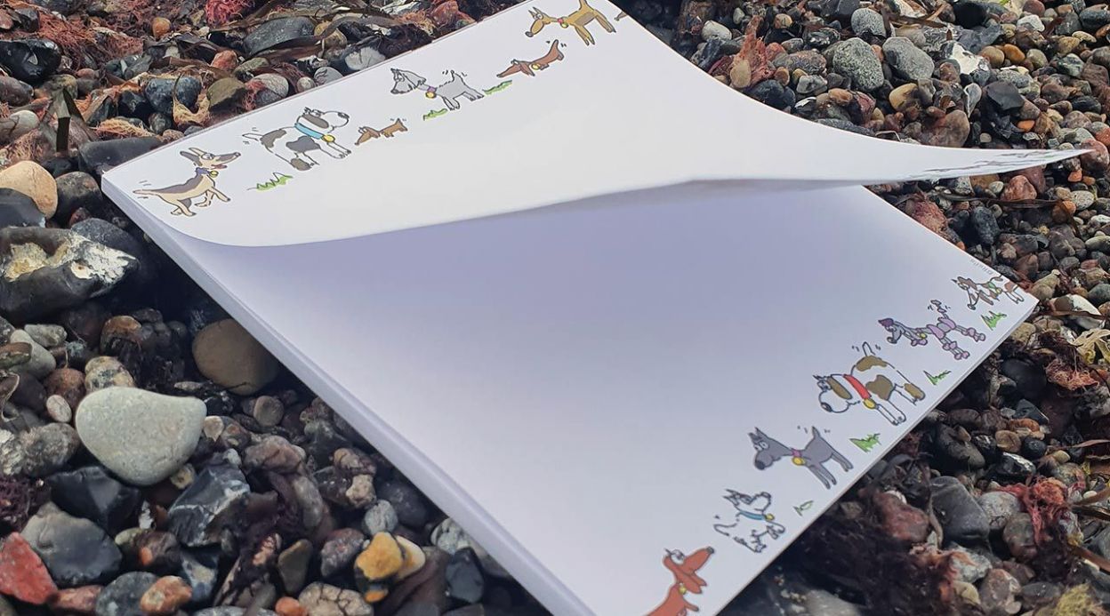 "Moment, ich muss mir das mal eben notieren, wo ist denn noch gleich ein Zettel?" Hier ist ein Zettel, ein ganz besonderer mit vielen freundlich blickenden Hunden. Du möchtest auch so einen haben, denn dein Liebling sieht so aus wie der kleine Pepe?